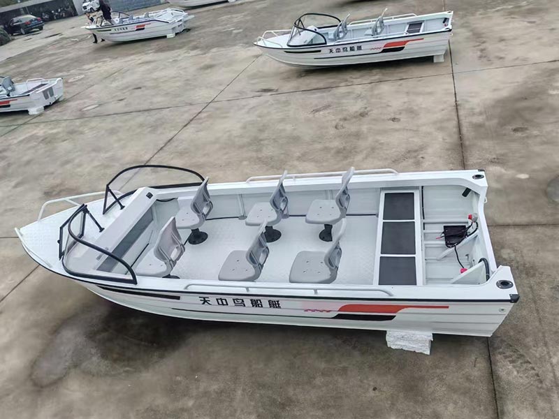名称:TZN528铝合金快艇 规格:5.28*1.93*x0.7 乘员:8人 配机:40HP-60HP 航速:50km/h 配置:鱼竿座:1个 舱底泵:1个 电池座:1个 舱底开关面板:1个